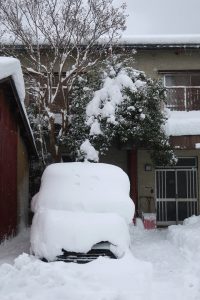 だが近くで見ると、なんと、車の上へ積もているだけでもごっつい量だがな。